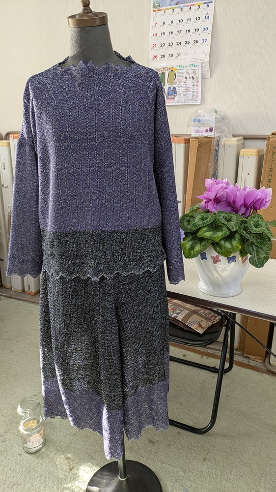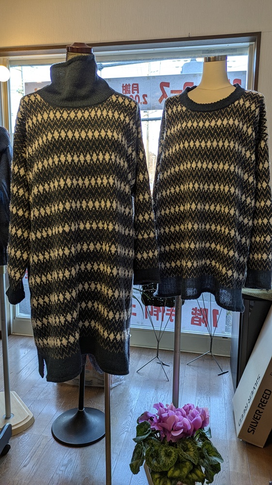 編み込み編み婦人ものロングワンピースと紳士ものセーター